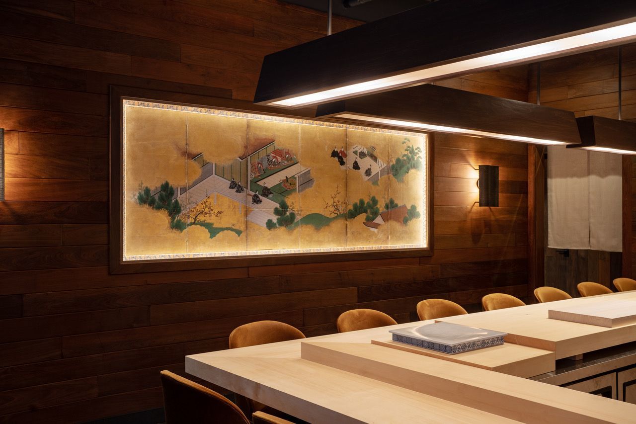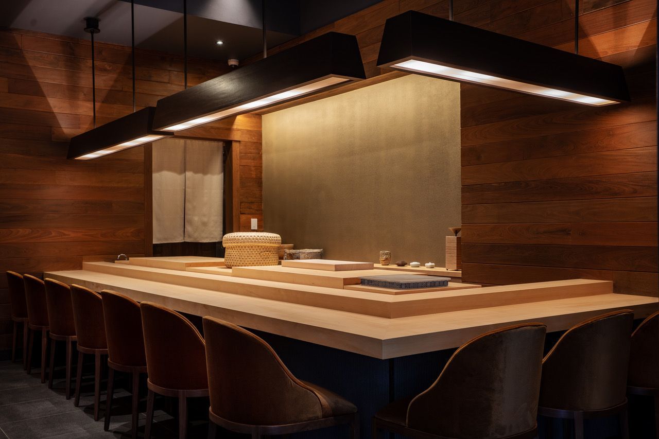 The intimate 10-seat sushi counter offers a relaxed, yet elevated atmosphere where guests can truly immerse themselves in the tranquil and elegant ambiance of the space and chef Eiji Ichimura’s mastery.